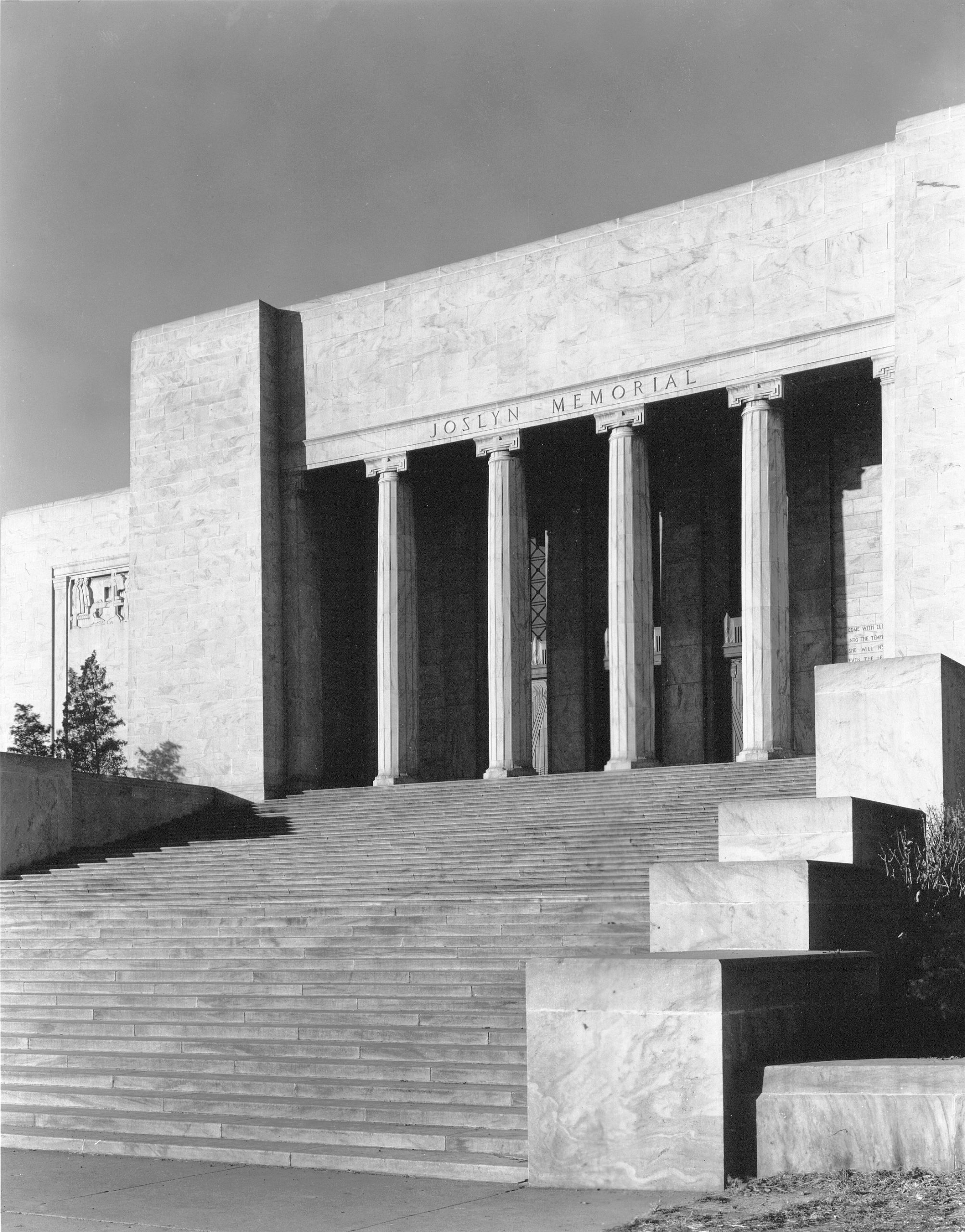 When this extraordinary Art Deco building opened its doors on November 29, 1931, it was celebrated not only as an important addition to the city of Omaha, but to modern American architecture as well. In 1938, the Joslyn Memorial (as it was called) was listed among the 100 finest buildings in the United States. Construction took three years and cost almost three million dollars. Architects for the project were father-son team John and Alan McDonald who maintained one of Omaha’s premier architectural firms; builder was Peter Kiewit Sons. The McDonalds’ original designs for the 1931 building were in the European Beaux-Arts style but, owing to a number of factors, they went on to stretch their own stylistic boundaries, evolving the design into something startlingly different. A design that Alan McDonald described as an attempt “to combine the spirit of the modern with the culture of the past.”