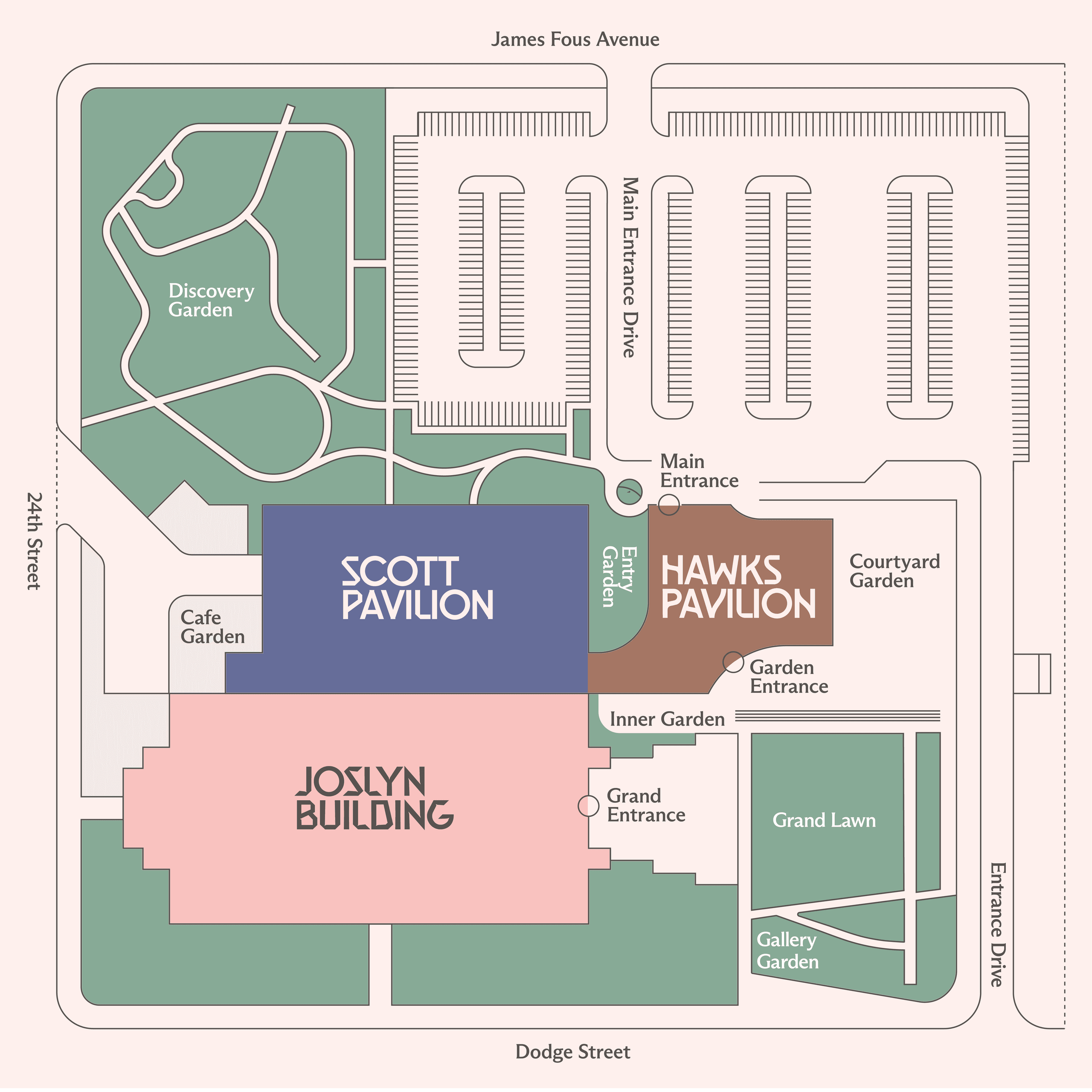 The Joslyn is accessible on foot or via car, bike, or bus.