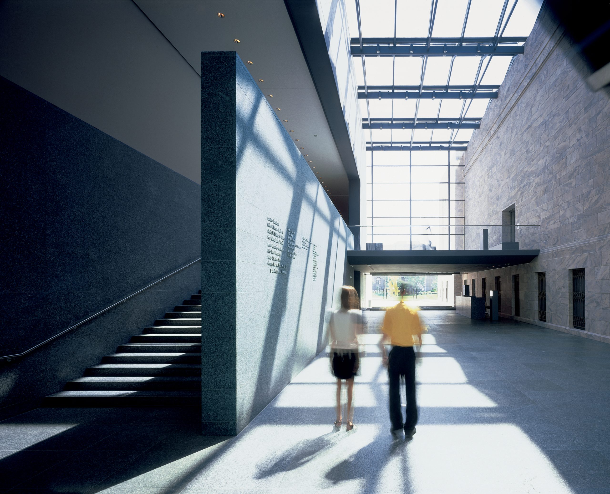 From the 1970s until the late 1980s, aspects of the building were updated whenever possible, but a growing audience, art collection, and programming pointed to the need for additional galleries, public spaces, and modernized facilities. In 1987, Joslyn Art Museum was adopted as the institution’s legal name, and planning for a dramatic capital expansion began. Director Graham W. J. Beal noted “the need for a facility amenable to activities that are both serious and lively, intellectual and social . . . facilities that would convert the sixty-year-old, general-purpose cultural center into a specialist art museum, as well as provide the means to handle the retail and food service operations now common to most art museums of any size.” The Renowned British architect Norman Foster, now Baron Foster of Thames Bank, was selected to lead the project—his first US commission. His design—an elegant, rectilinear form connected to the original building by way of a soaring glass atrium—added 58,000 square feet to the Museum, including 14,000 square feet of gallery space to accommodate the Museum’s postwar and contemporary art collection and temporary exhibitions. The Suzanne & Walter Scott Pavilion opened to the public November 19, 1994.